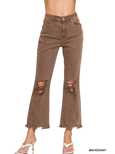 Risen Tummy Control High Rise Crop Wide Pants in Choco Brown