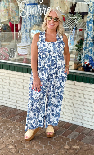 Clearance CHAMBRAY FLORAL JUMPSUIT