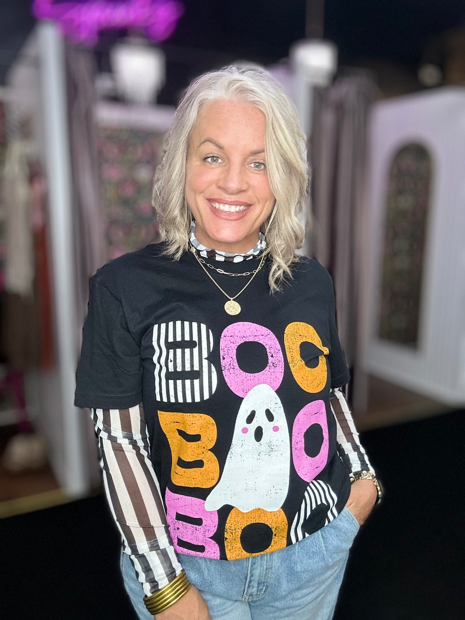 Get trendy with this Mesh Top in a black and white striped print! This playful top features lettuce hems, a mock neckline, and a sheer mesh material that can be layered under or over any outfit. Don't miss out on this must have piece! Fabric: 95% Polyester, 5% Spandex