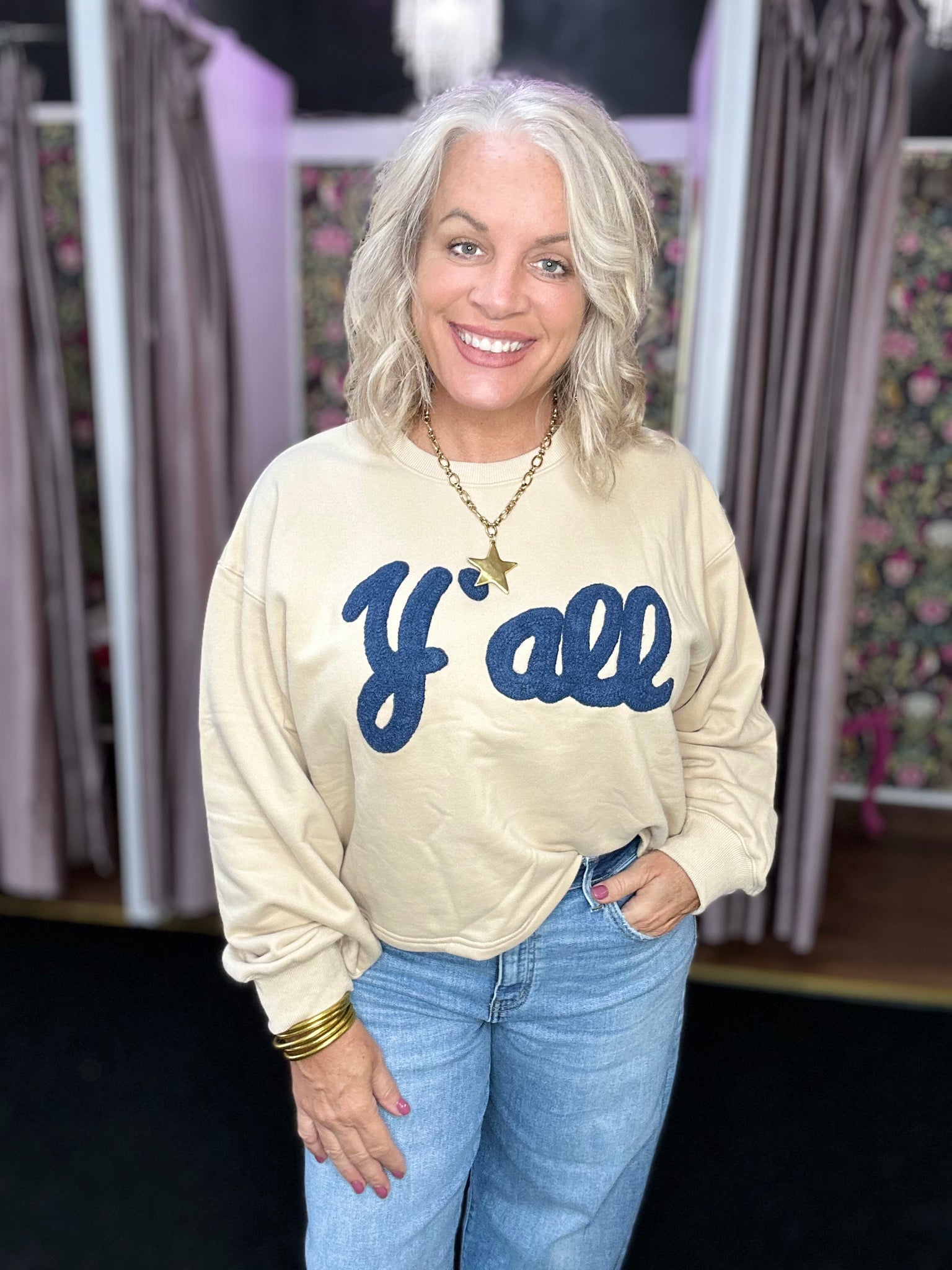 Get cozy and express your southern charm with the Y'all Crew Neck Sweatshirt. Made from a comfy 50% polyester and 50% cotton blend, it’s soft, durable, and just right for lounging or layering. Whether you’re sipping sweet tea or chasing sunset vibes, this sweatshirt brings warmth and style with a playful twist.